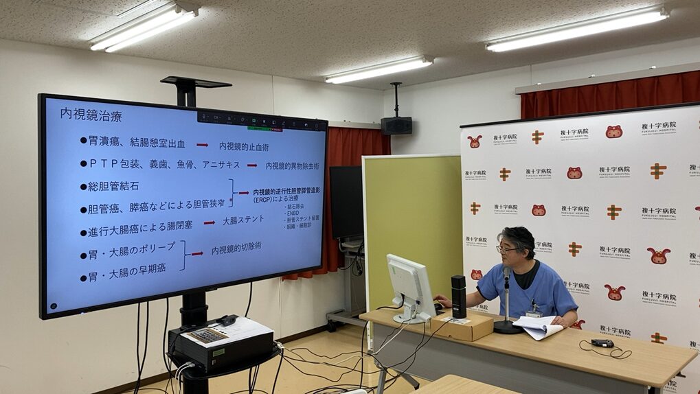 今回は、消化器センター長 中浦先生より「内視鏡治療について」と題し、ご講演をして頂きました。