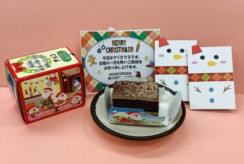 栄養科では12月25日のクリスマスにクリスマスケーキなどの行事食および手作りの行事カードを提供いたしました。