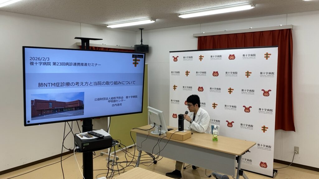 今回は、呼吸器センター 古内先生より「肺NTM症治療の考え方と当院の取り組みについて」と題し、ご講演をして頂きました。