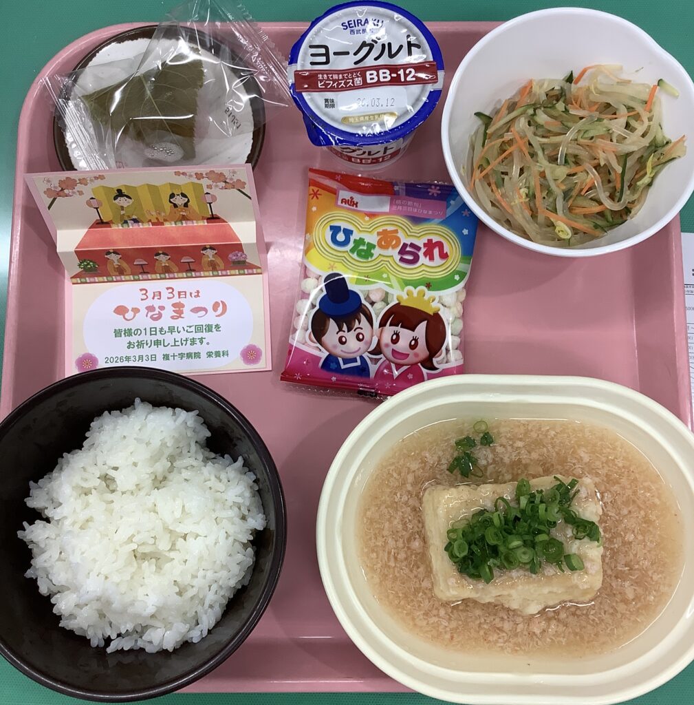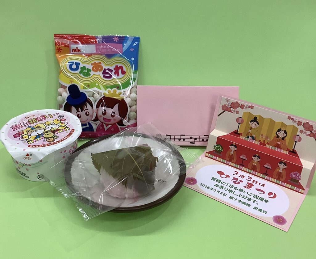 栄養科では3月3日のひなまつりに桜もち等の行事食および行事食カードを提供いたしました。