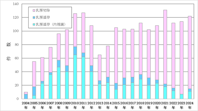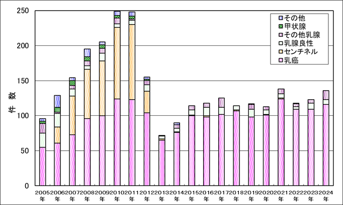 2005年1月には日本乳癌学会認定施設(認定施設番号:3074)(日本乳癌学会認定・関連施設)に指定されました。同年8月より乳房温存手術に対して乳房の整容性を重視した乳がん内視鏡手術を開始しました。
